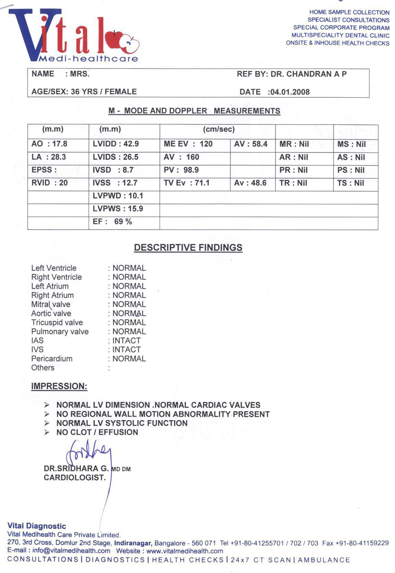 The Echocardiography report of 2nd Nov. 2006 is shown in fig 1